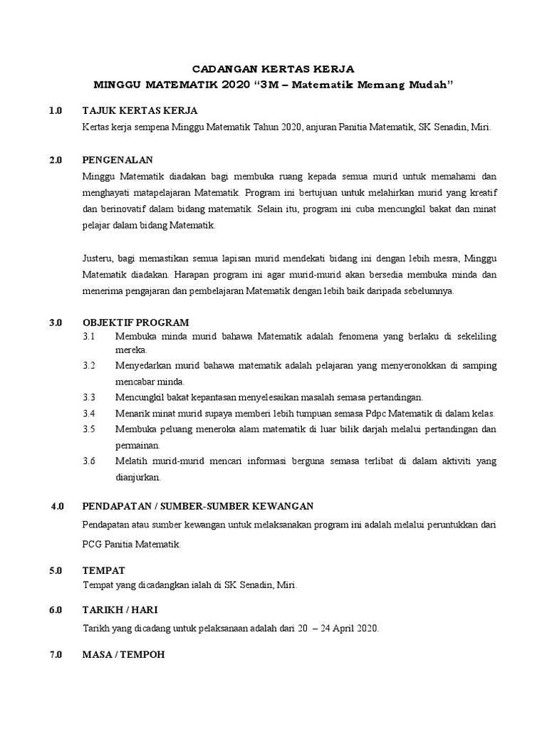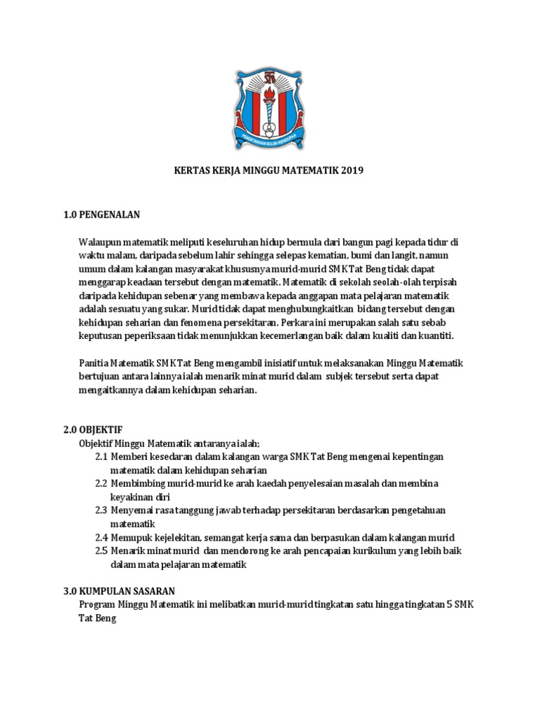 Kertas Kerja Minggu Matematik 2018 Docx Kertas Kerja Minggu Panitia Matematik Sekolah Jenis Kebangsaan Tamil Ladang Cheroh 2018 Tarikh 05 07 2018 Course Hero